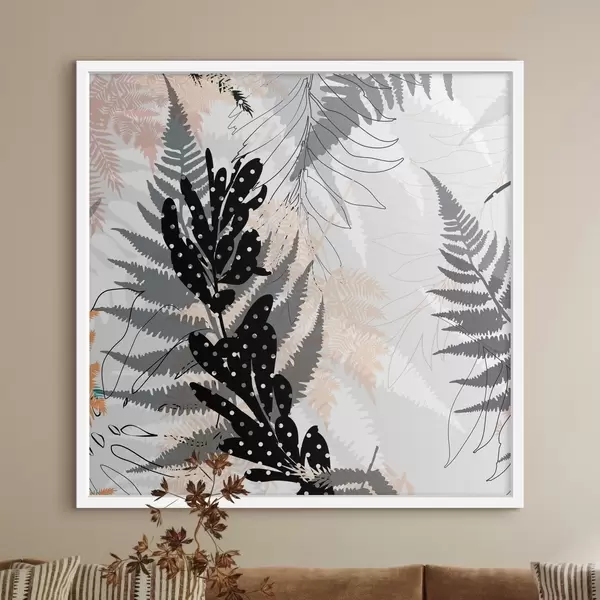 Poster impresión de naturaleza, follaje decorativo, mezcla de selva, formas de helecho, paleta neutra, arte de la hoja f45104
