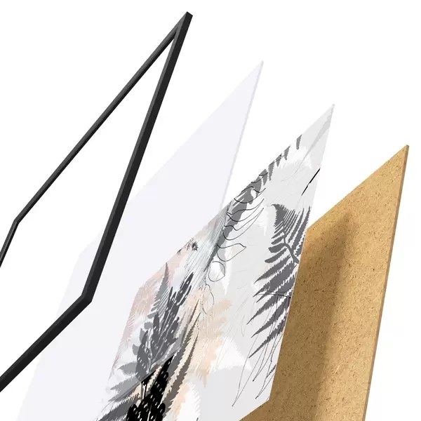 El póster consta de marco, plexiglás, imagen impresa y soporte de aglomerado. El póster puede colgarse inmediatamente en la pared gracias a los soportes de la parte posterior.