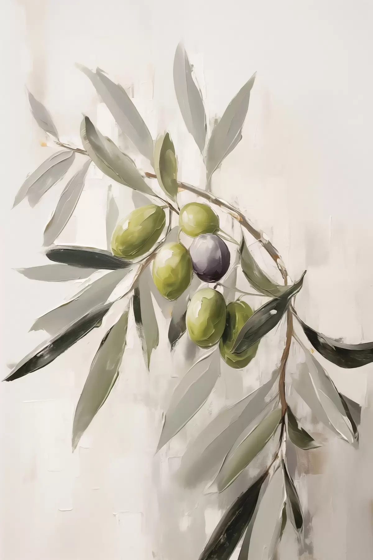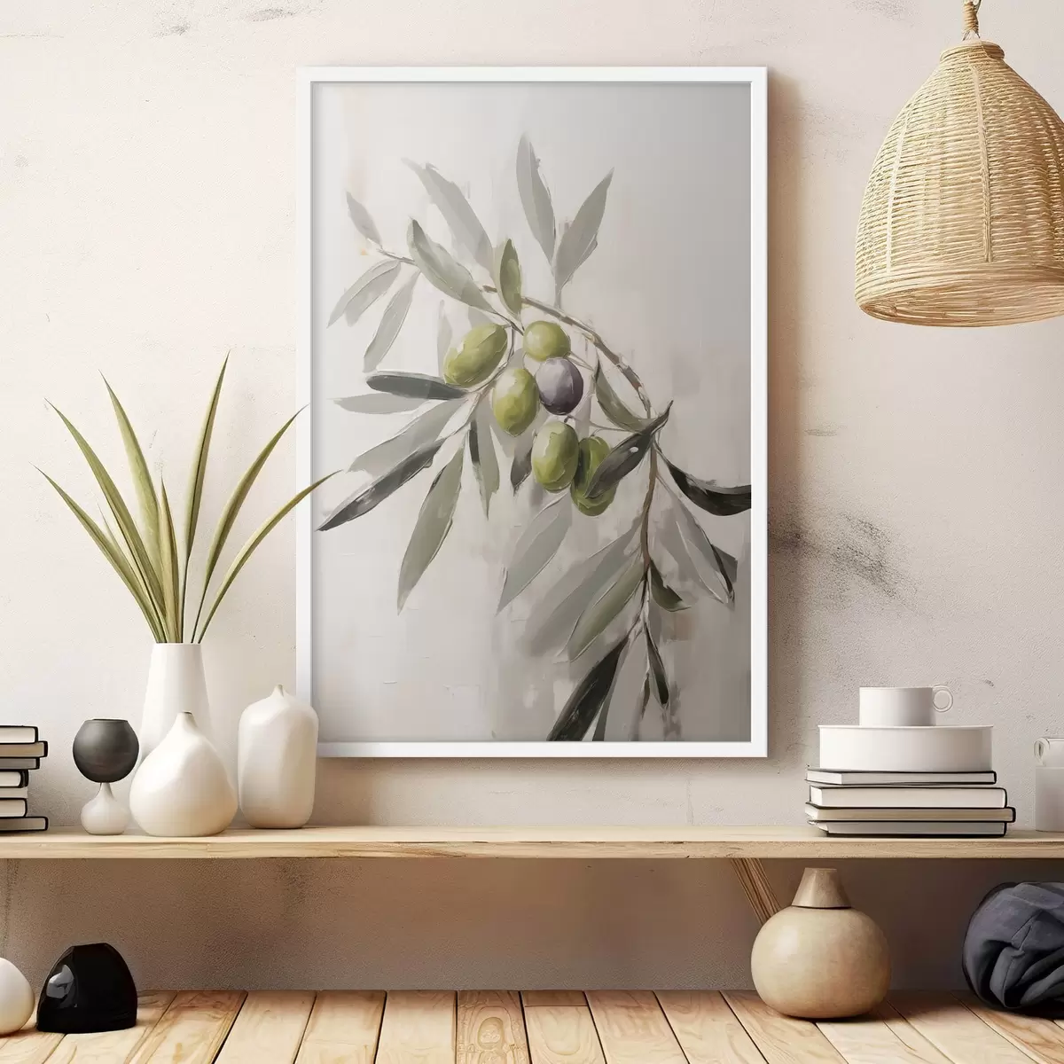 Poster aceitunas verdes, detalle de rama, fondo claro, orgánico, paleta natural, rústico Nr f45110