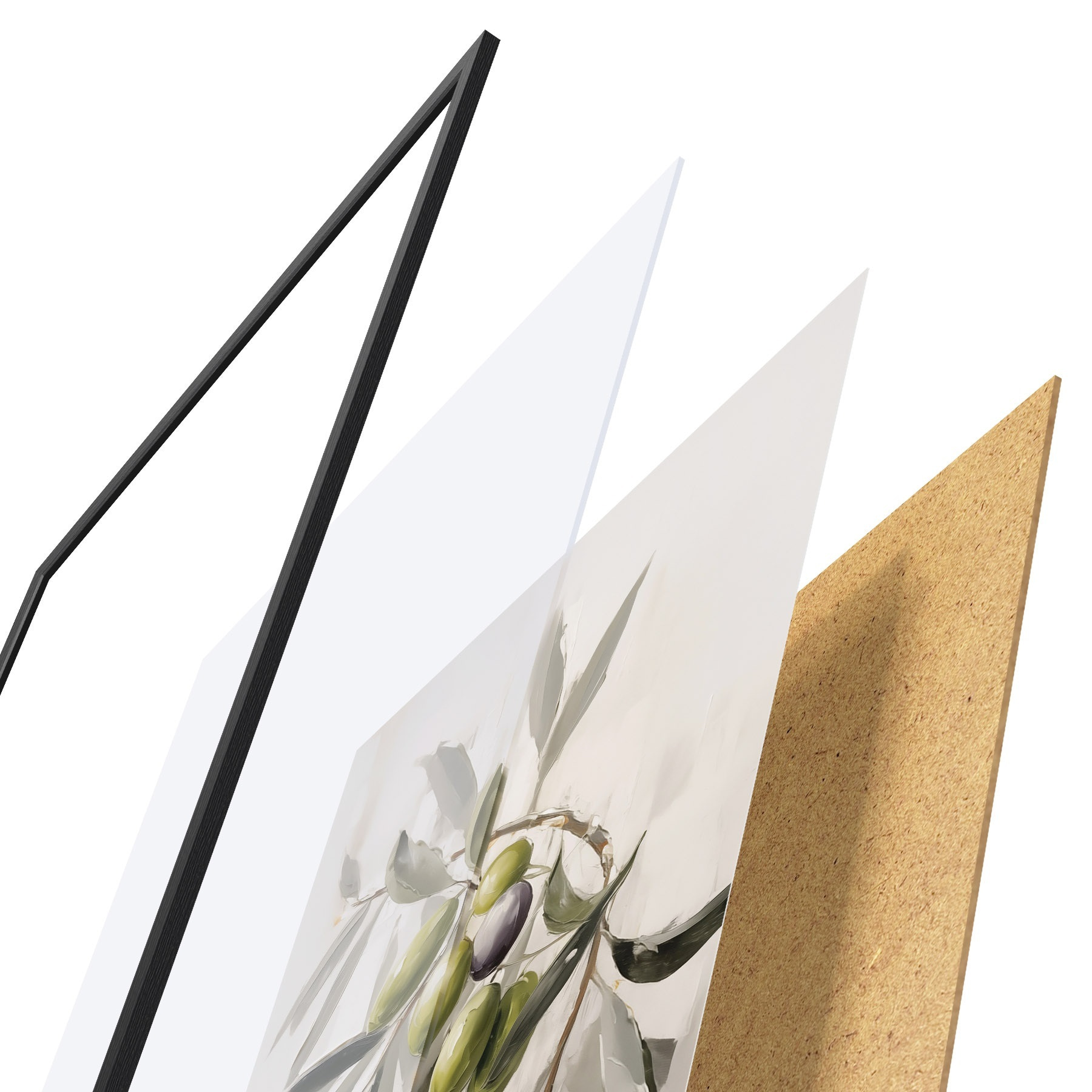 El póster consta de marco, plexiglás, imagen impresa y soporte de aglomerado. El póster puede colgarse inmediatamente en la pared gracias a los soportes de la parte posterior.