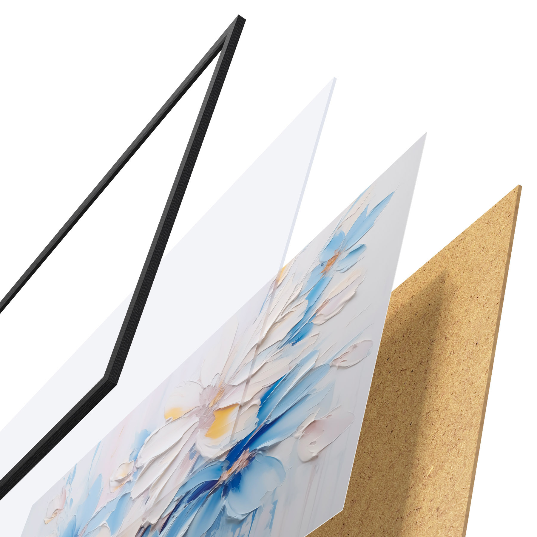 El póster consta de marco, plexiglás, imagen impresa y soporte de aglomerado. El póster puede colgarse inmediatamente en la pared gracias a los soportes de la parte posterior.