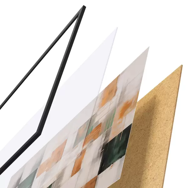 El póster consta de marco, plexiglás, imagen impresa y soporte de aglomerado. El póster puede colgarse inmediatamente en la pared gracias a los soportes de la parte posterior.