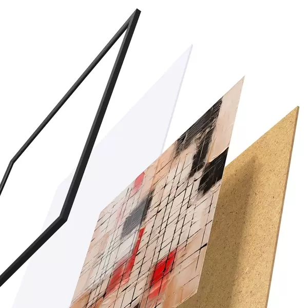 El póster consta de marco, plexiglás, imagen impresa y soporte de aglomerado. El póster puede colgarse inmediatamente en la pared gracias a los soportes de la parte posterior.