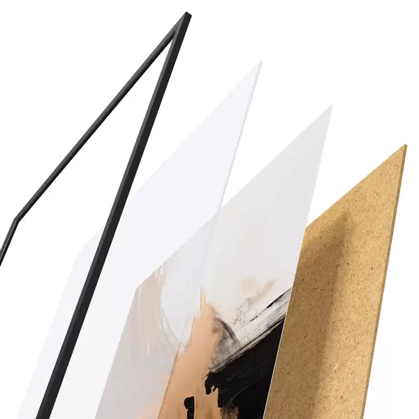 El póster consta de marco, plexiglás, imagen impresa y soporte de aglomerado. El póster puede colgarse inmediatamente en la pared gracias a los soportes de la parte posterior.