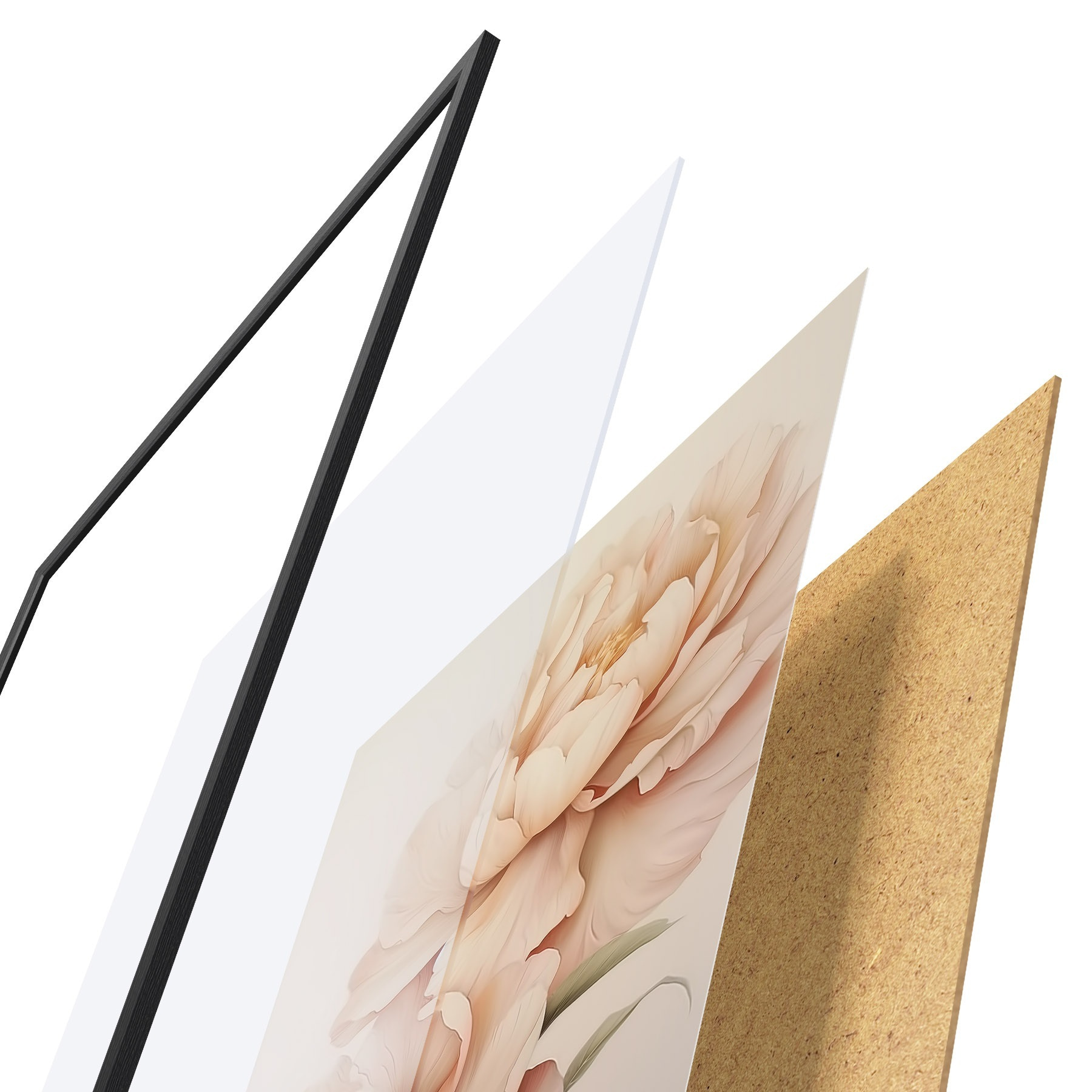 El póster consta de marco, plexiglás, imagen impresa y soporte de aglomerado. El póster puede colgarse inmediatamente en la pared gracias a los soportes de la parte posterior.