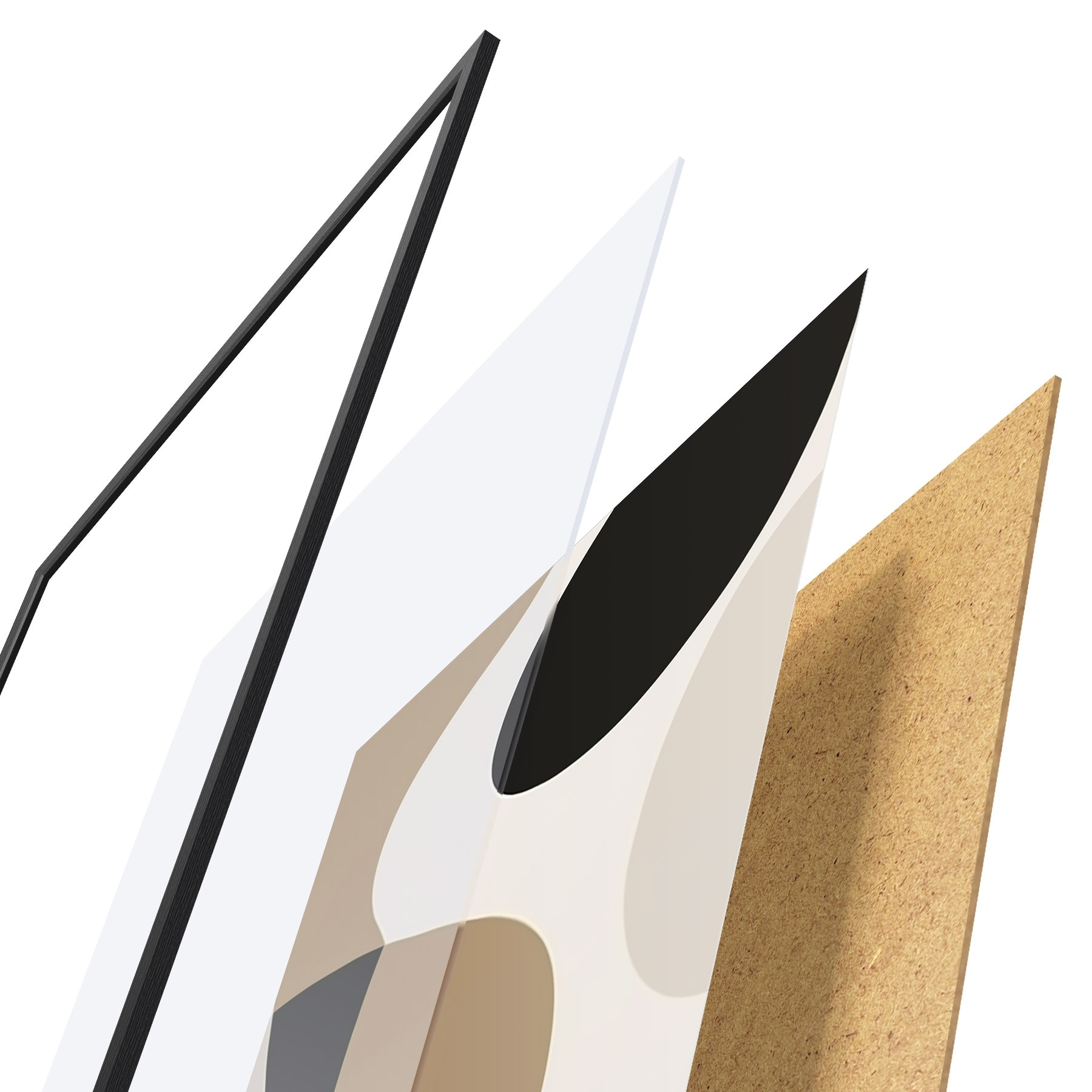 El póster consta de marco, plexiglás, imagen impresa y soporte de aglomerado. El póster puede colgarse inmediatamente en la pared gracias a los soportes de la parte posterior.
