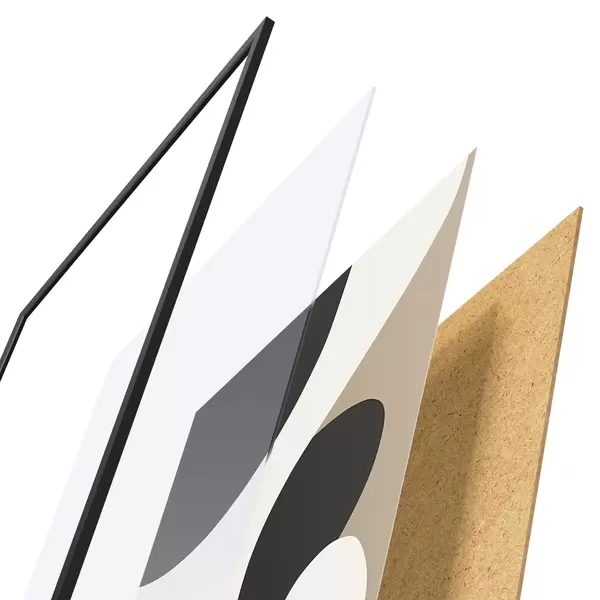 El póster consta de marco, plexiglás, imagen impresa y soporte de aglomerado. El póster puede colgarse inmediatamente en la pared gracias a los soportes de la parte posterior.