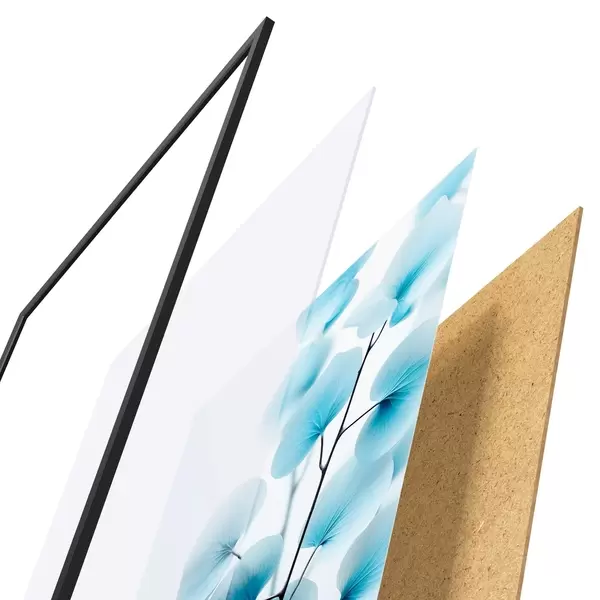 El póster consta de marco, plexiglás, imagen impresa y soporte de aglomerado. El póster puede colgarse inmediatamente en la pared gracias a los soportes de la parte posterior.