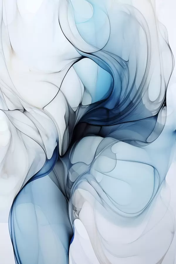 Poster Composición abstracta con líneas fluidas y pétalos translúcidos en tonos azul blanco y beige, imitación de tinta de alcohol Nr f45178