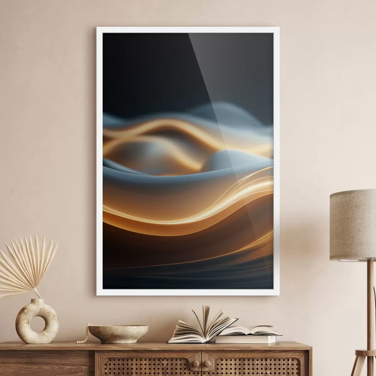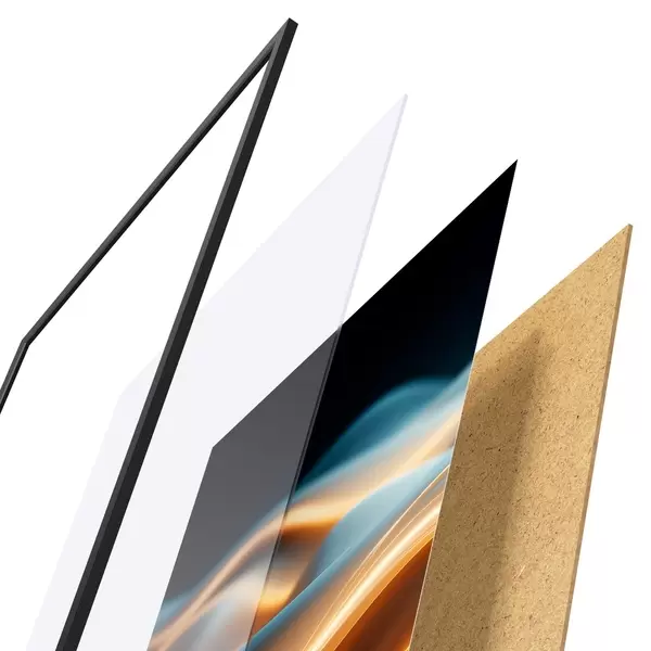 El póster consta de marco, plexiglás, imagen impresa y soporte de aglomerado. El póster puede colgarse inmediatamente en la pared gracias a los soportes de la parte posterior.