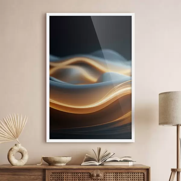 Poster Formas abstractas fluidas con líneas naranjas, curvas y líneas suaves, composición dinámica, fondo oscuro Nr f45184
