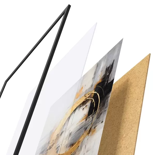El póster consta de marco, plexiglás, imagen impresa y soporte de aglomerado. El póster puede colgarse inmediatamente en la pared gracias a los soportes de la parte posterior.