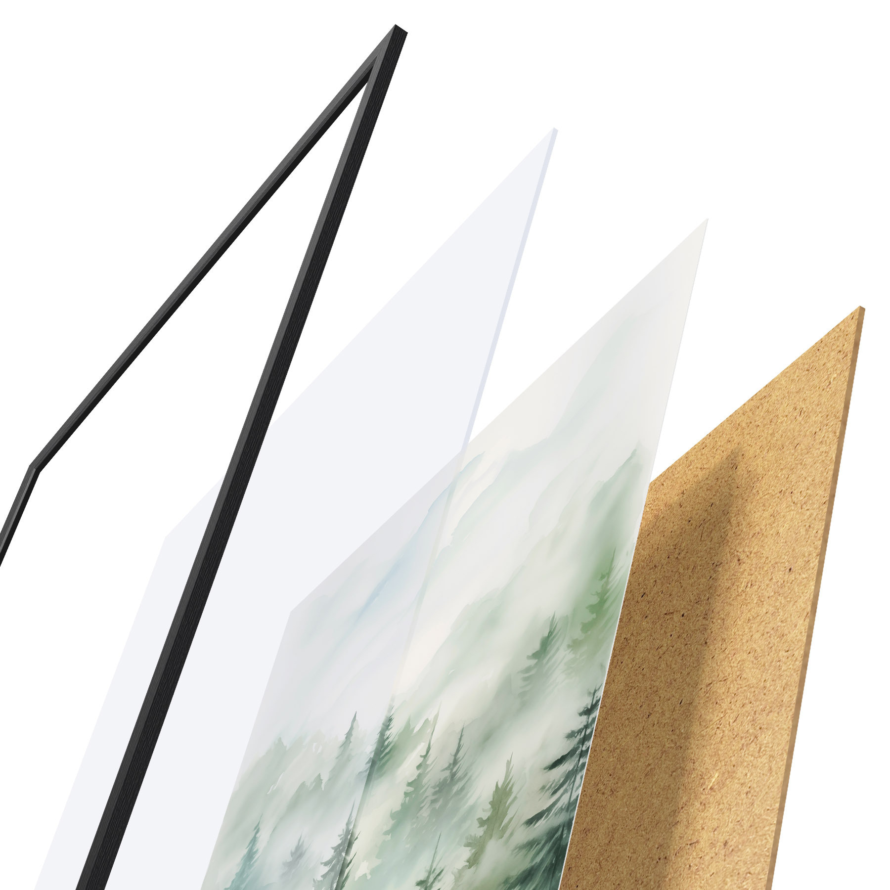 El póster consta de marco, plexiglás, imagen impresa y soporte de aglomerado. El póster puede colgarse inmediatamente en la pared gracias a los soportes de la parte posterior.