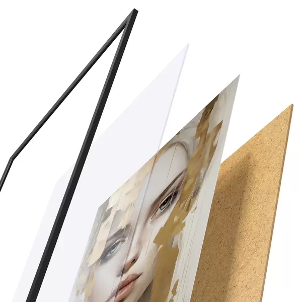 El póster consta de marco, plexiglás, imagen impresa y soporte de aglomerado. El póster puede colgarse inmediatamente en la pared gracias a los soportes de la parte posterior.