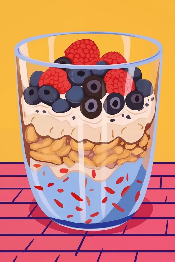 Poster Vaso con yogur, bayas y cereales Nr f45216