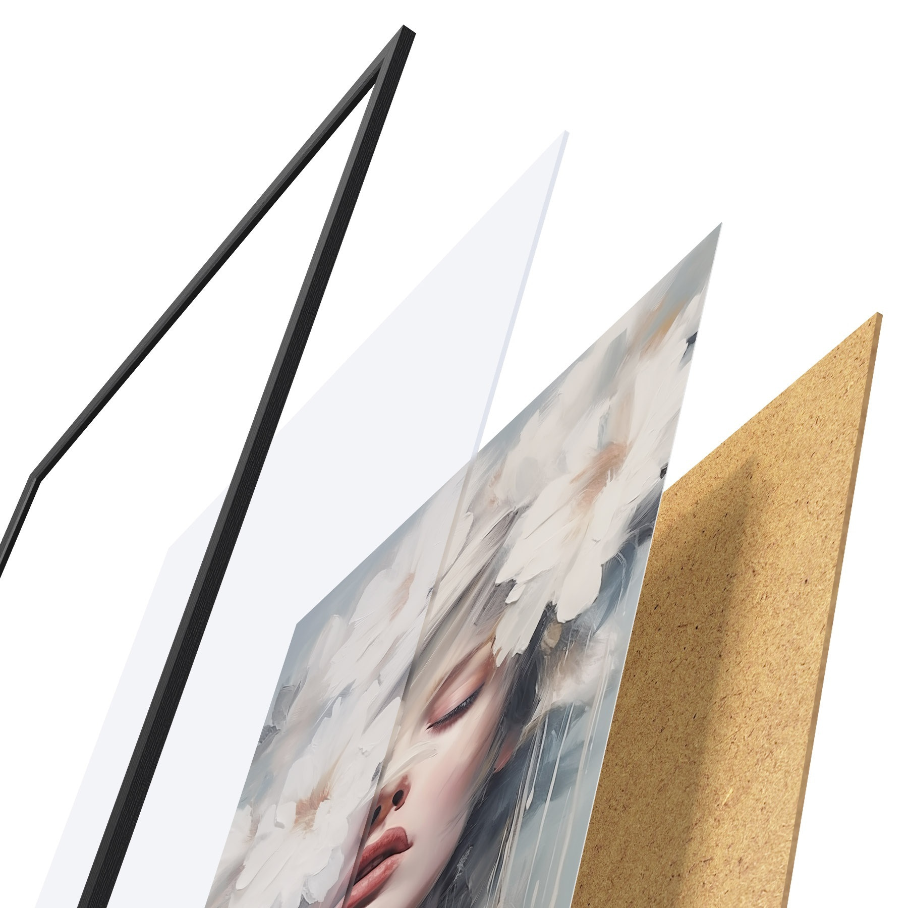 El póster consta de marco, plexiglás, imagen impresa y soporte de aglomerado. El póster puede colgarse inmediatamente en la pared gracias a los soportes de la parte posterior.