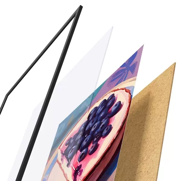 El póster consta de marco, plexiglás, imagen impresa y soporte de aglomerado. El póster puede colgarse inmediatamente en la pared gracias a los soportes de la parte posterior.