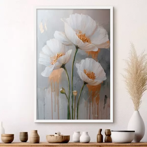 Poster Margaritas blancas: pintura volumétrica sobre fondo azul f45240