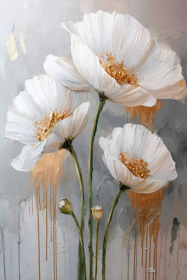 Poster Margaritas blancas: pintura volumétrica sobre fondo azul f45240