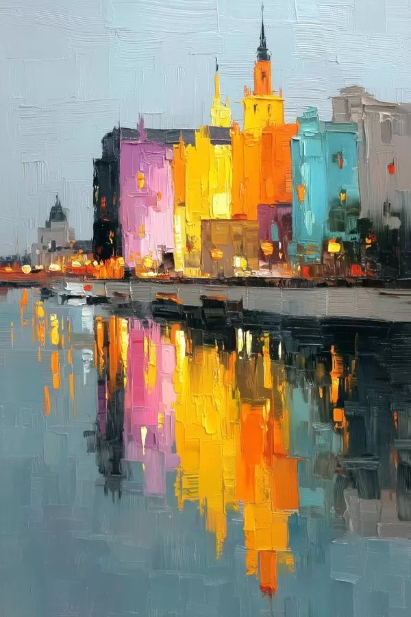 Poster Luces de la ciudad: paisaje vibrante en estilo empastado Nr f45242