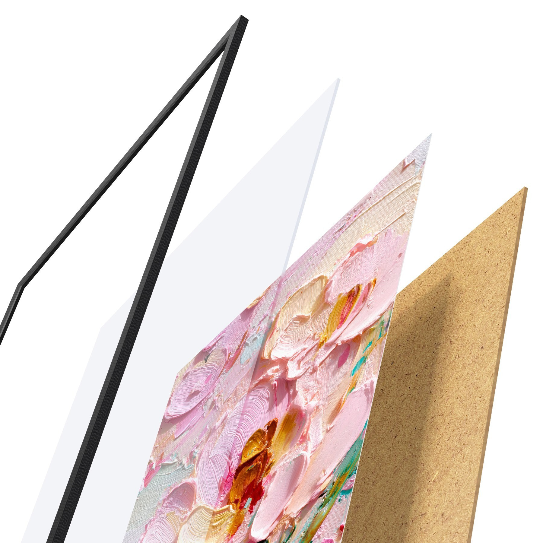 Vendemos cuadros en bastidor: se trata de un marco de madera sobre el que se extiende el lienzo. Este cuadro no necesita marco; puedes colgarlo directamente en la pared.