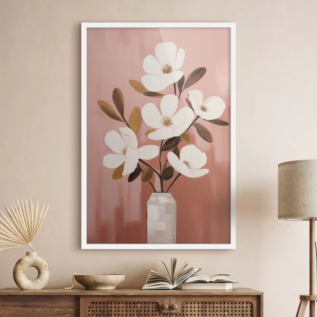 Poster Magnolias blancas en un jarrón blanco: cuadro floral minimalista Nr f45254