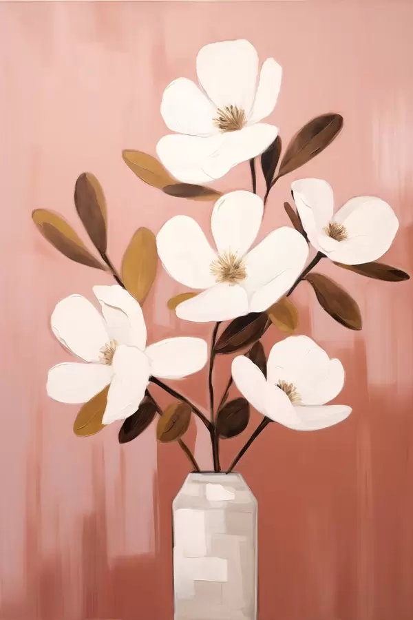 Poster Magnolias blancas en un jarrón blanco: cuadro floral minimalista Nr f45254