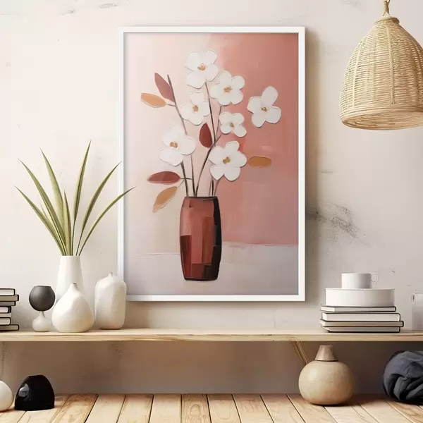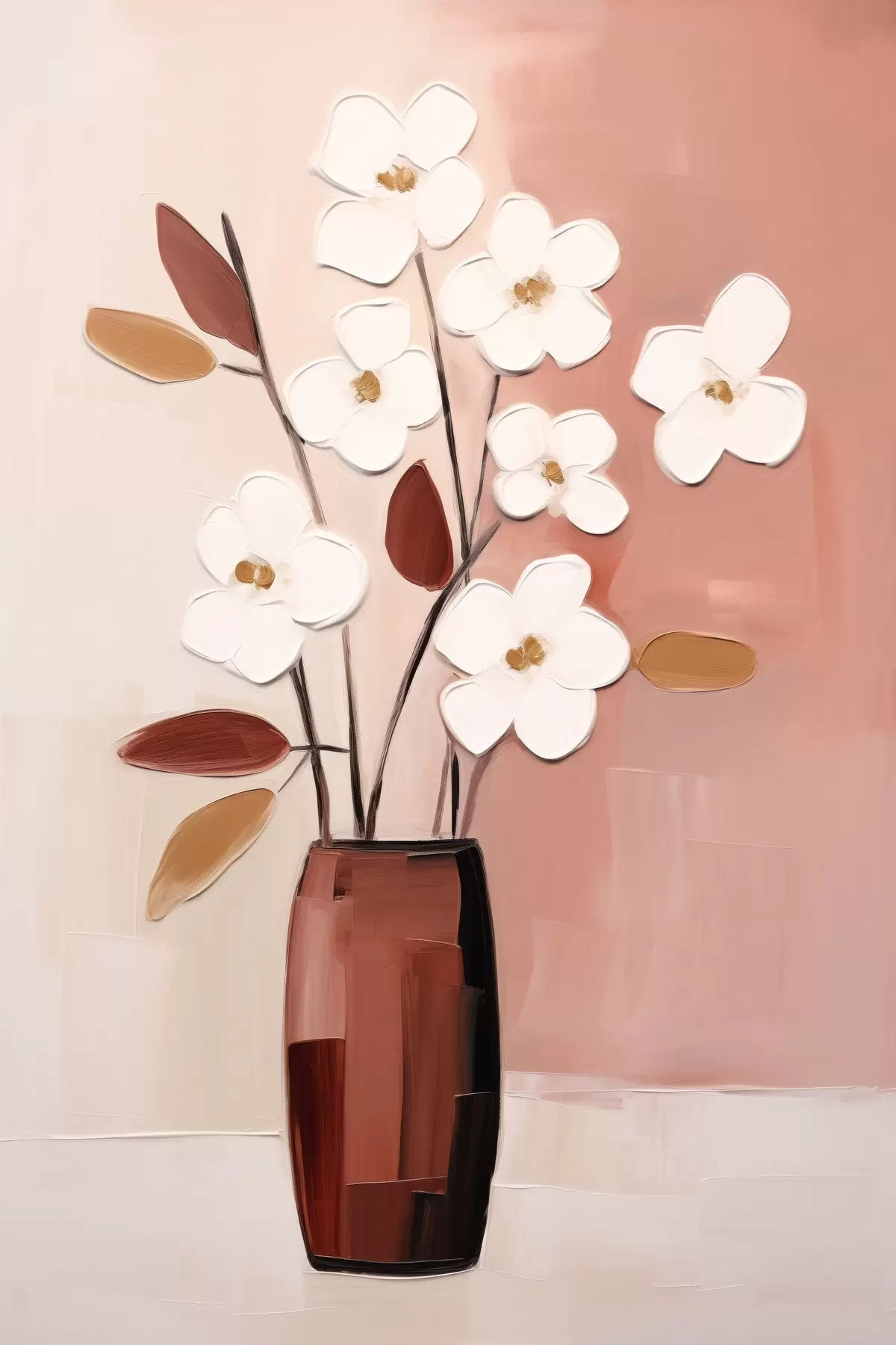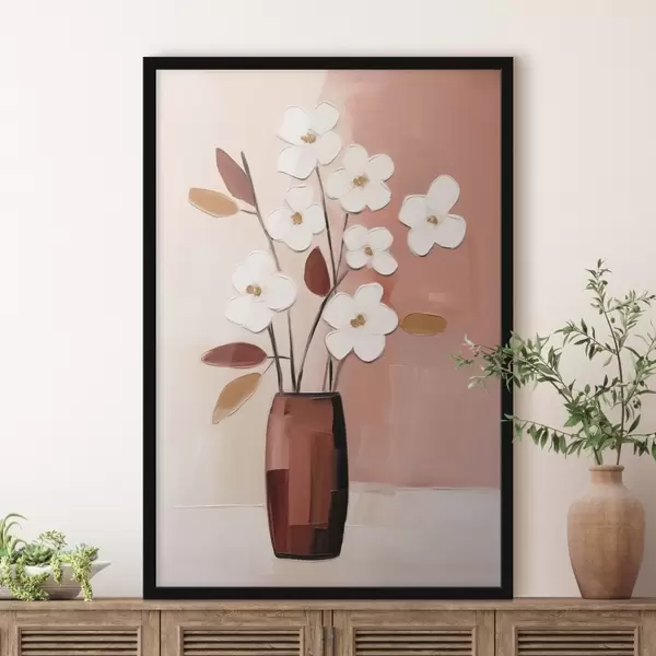 Poster Flores blancas en un jarrón oscuro: pintura floral moderna Nr f45255
