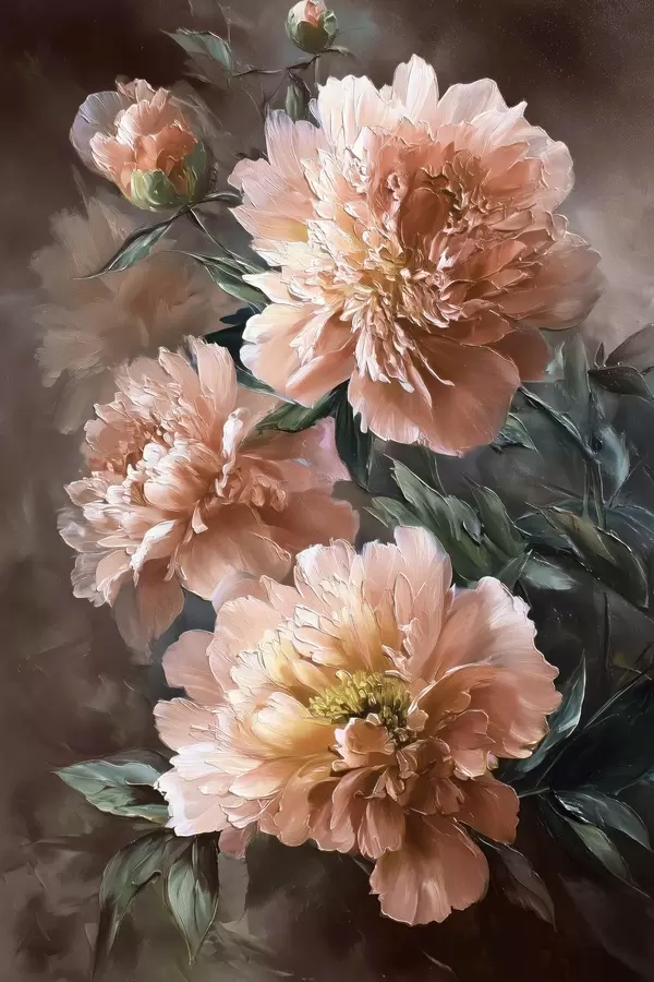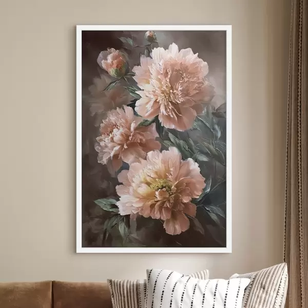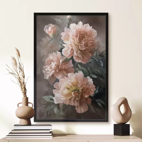 Poster Ramo de peonías rosas con trazos atrevidos sobre fondo oscuro f45260