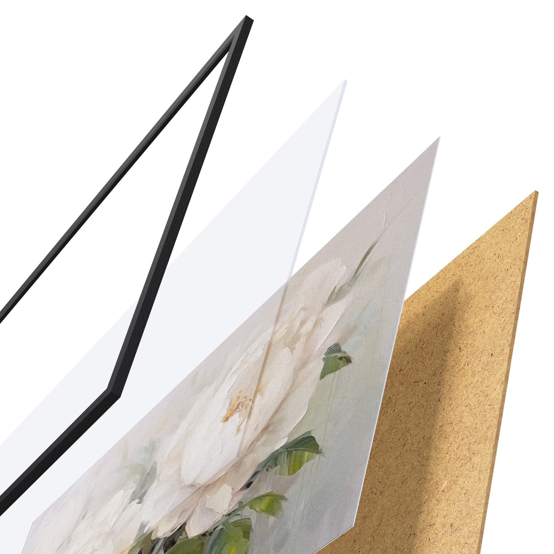 El póster consta de marco, plexiglás, imagen impresa y soporte de aglomerado. El póster puede colgarse inmediatamente en la pared gracias a los soportes de la parte posterior.