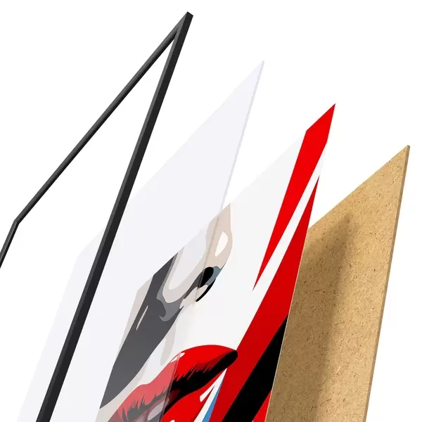 El póster consta de marco, plexiglás, imagen impresa y soporte de aglomerado. El póster puede colgarse inmediatamente en la pared gracias a los soportes de la parte posterior.