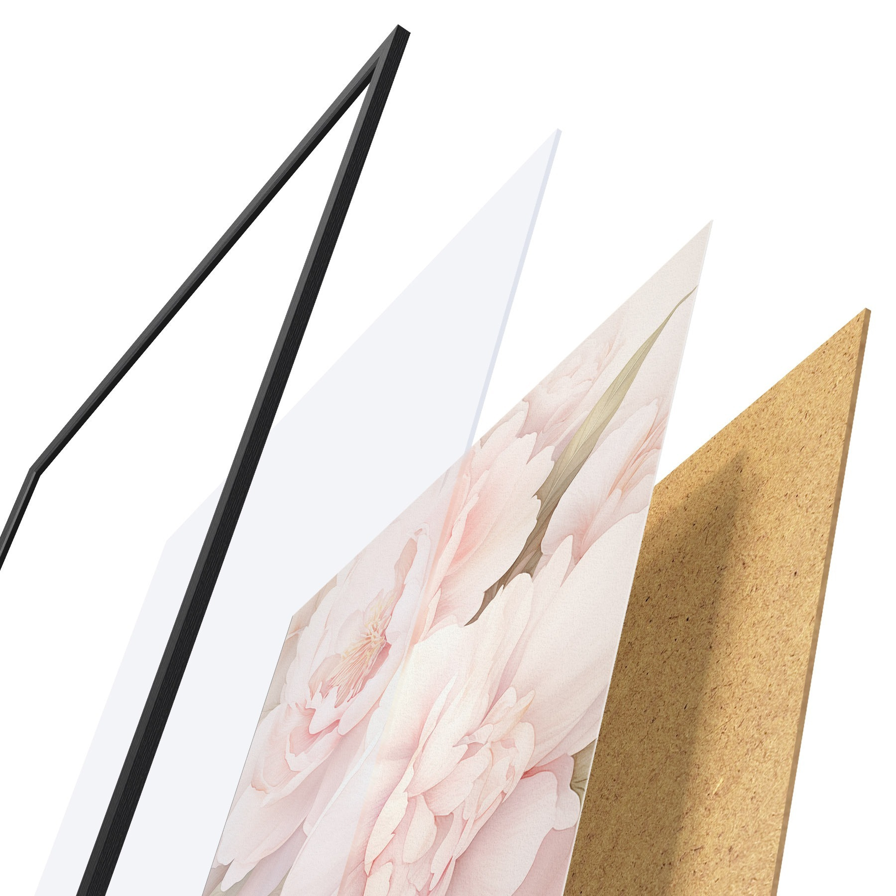 El póster consta de marco, plexiglás, imagen impresa y soporte de aglomerado. El póster puede colgarse inmediatamente en la pared gracias a los soportes de la parte posterior.