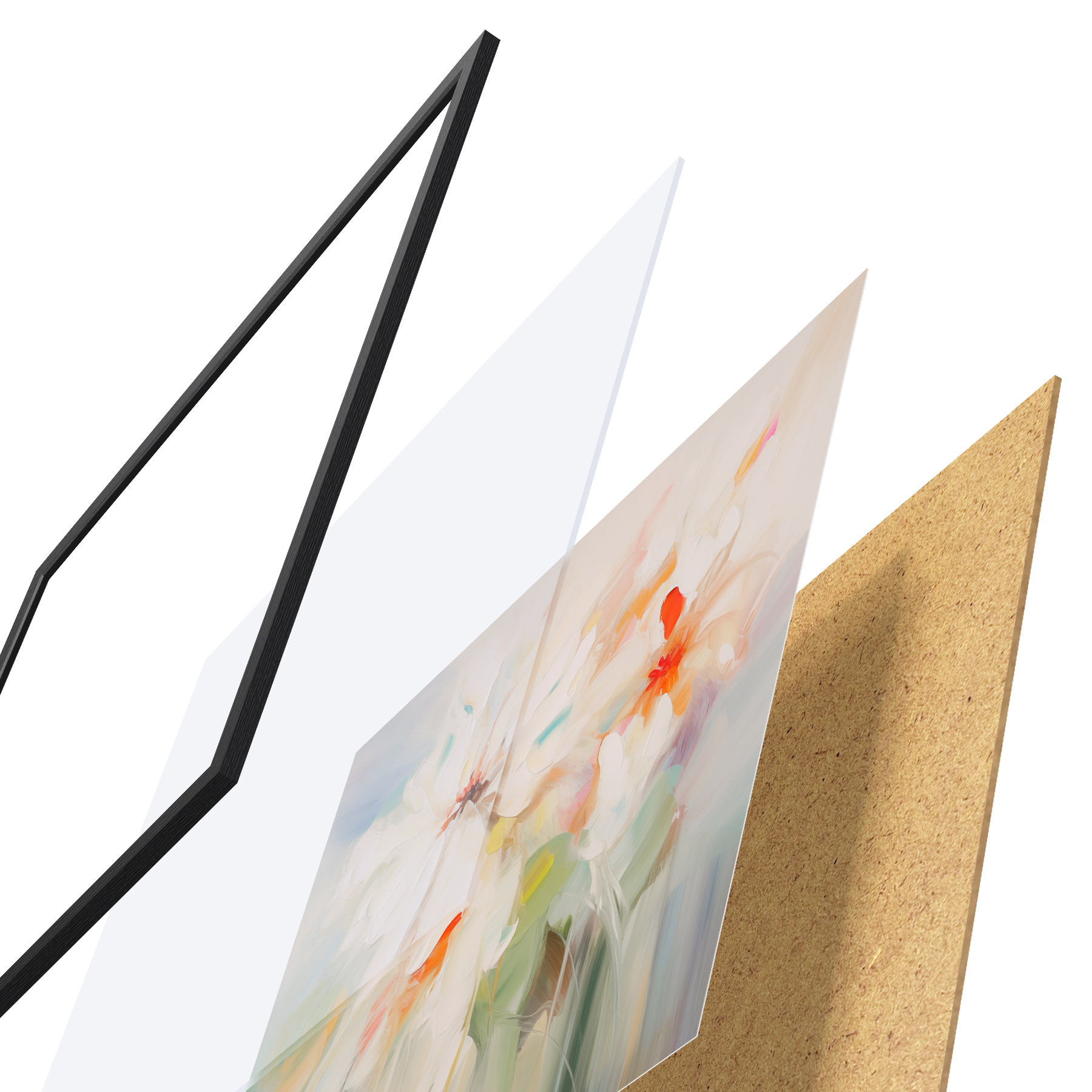 El póster consta de marco, plexiglás, imagen impresa y soporte de aglomerado. El póster puede colgarse inmediatamente en la pared gracias a los soportes de la parte posterior.