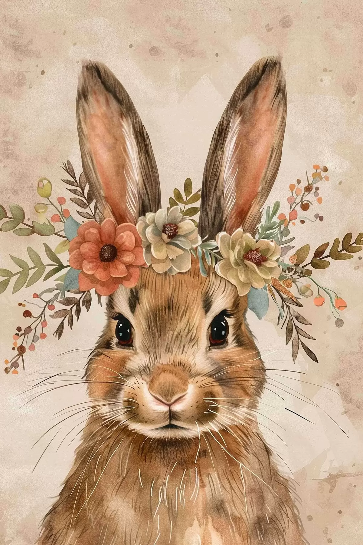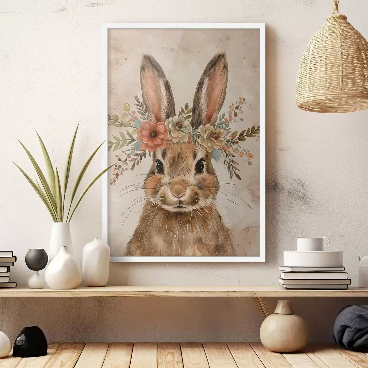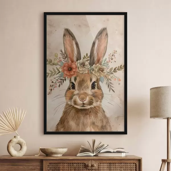 Poster Linda liebre con flores en estilo acuarela Nr f45332