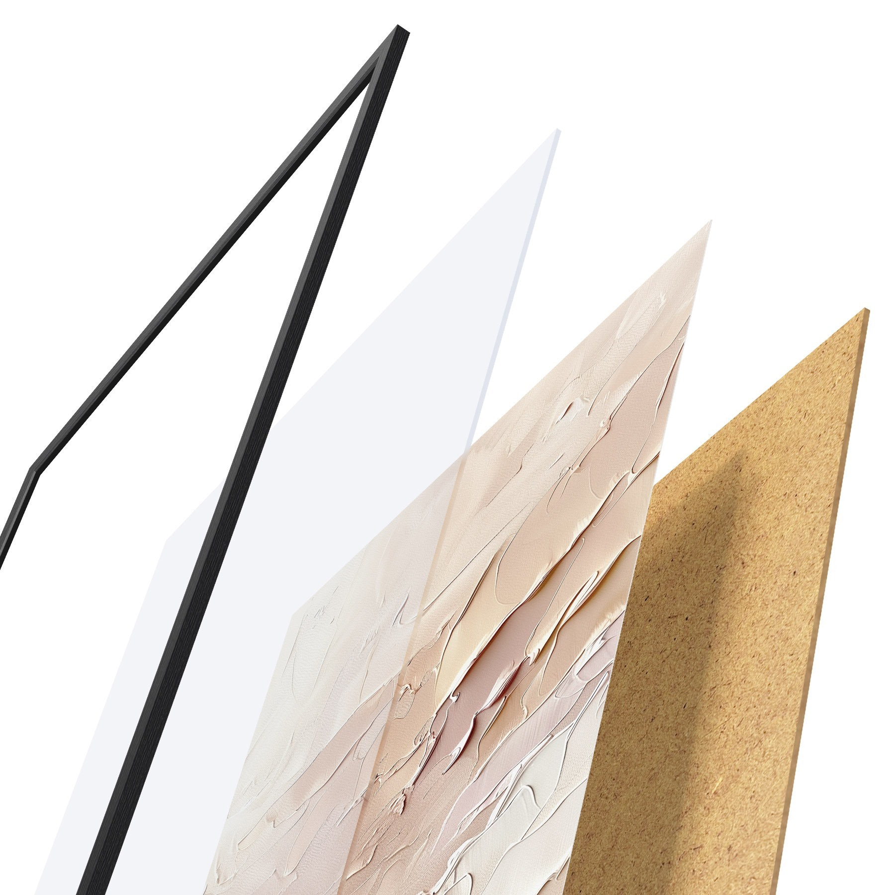 El póster consta de marco, plexiglás, imagen impresa y soporte de aglomerado. El póster puede colgarse inmediatamente en la pared gracias a los soportes de la parte posterior.