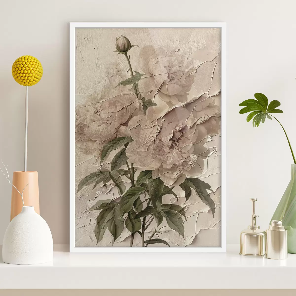 Poster Exuberante ramo de peonías sobre fondo claro f45337