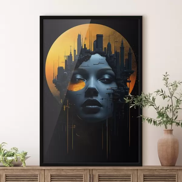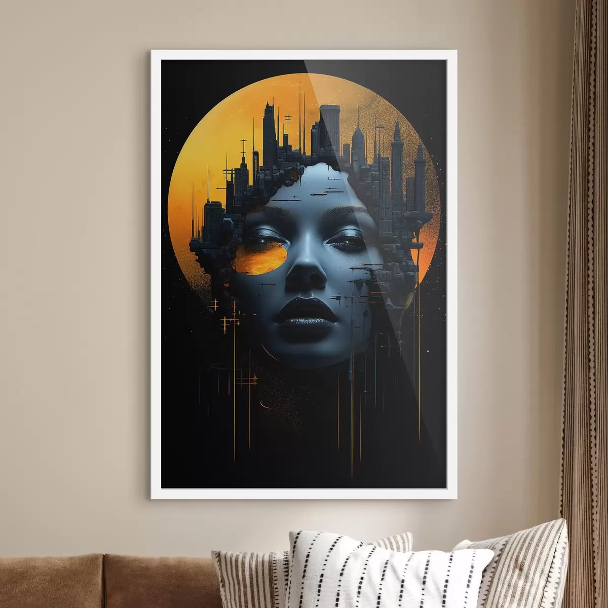 Poster Gente, cara de chica sobre fondo de ciudad, abstracto Nr f45341