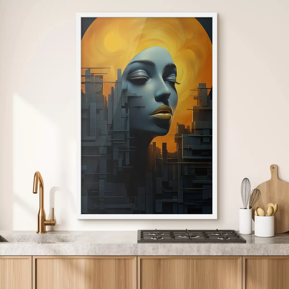 Poster La gente, la ciudad de la cara de la muchacha en un fondo abstracto Nr f45342