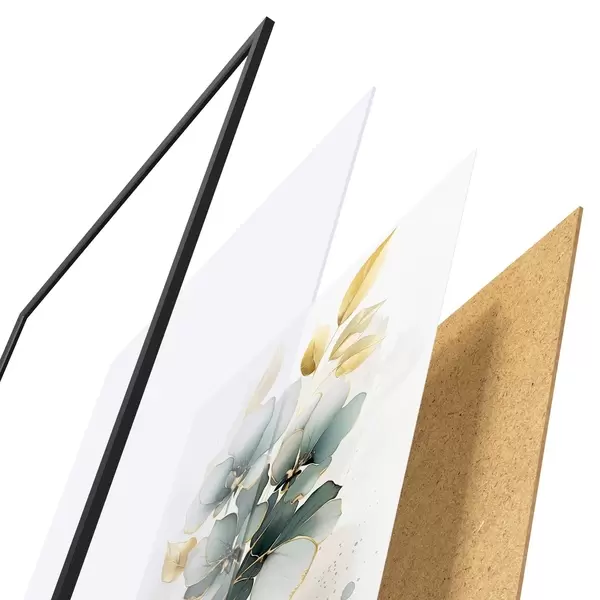El póster consta de marco, plexiglás, imagen impresa y soporte de aglomerado. El póster puede colgarse inmediatamente en la pared gracias a los soportes de la parte posterior.