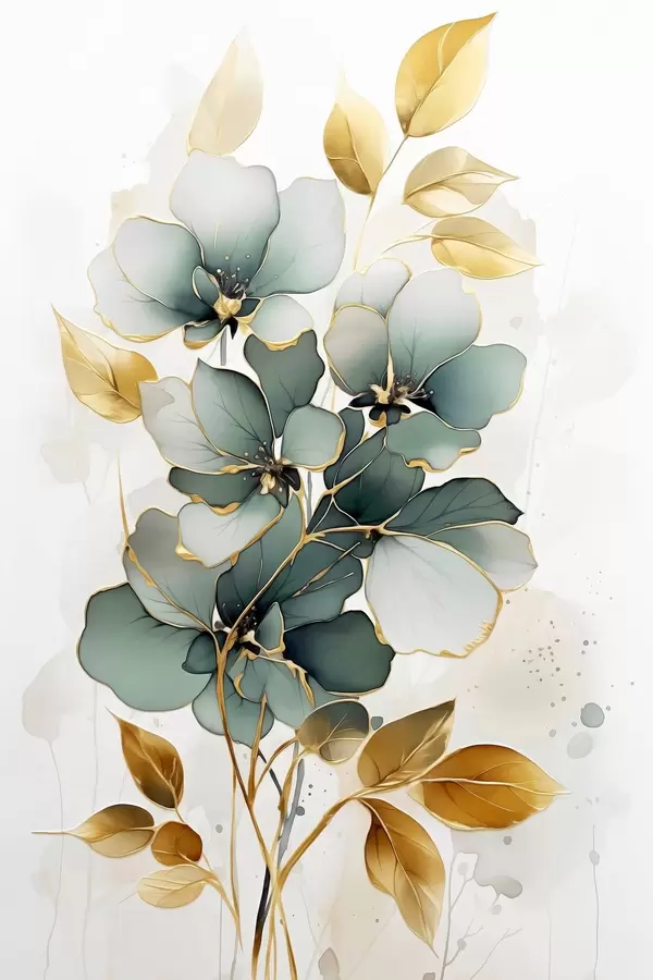 Poster Rama abstracta con flores y hojas Nr f45367
