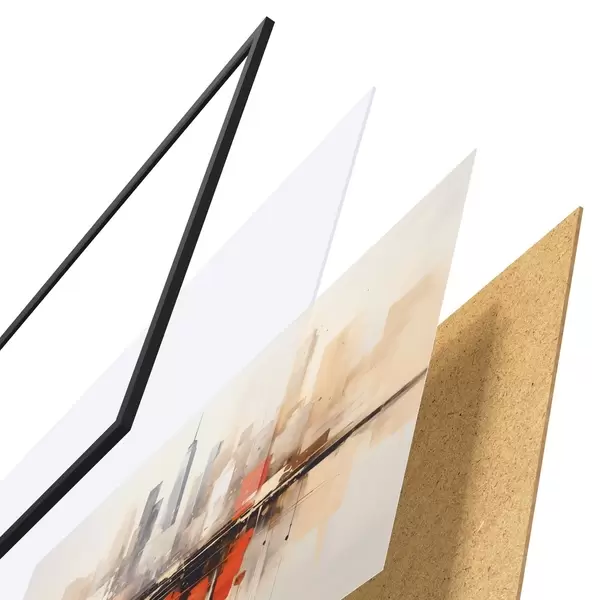 El póster consta de marco, plexiglás, imagen impresa y soporte de aglomerado. El póster puede colgarse inmediatamente en la pared gracias a los soportes de la parte posterior.