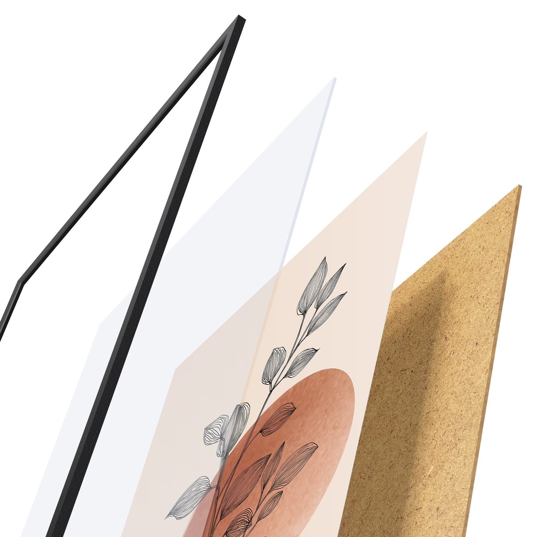 El póster consta de marco, plexiglás, imagen impresa y soporte de aglomerado. El póster puede colgarse inmediatamente en la pared gracias a los soportes de la parte posterior.