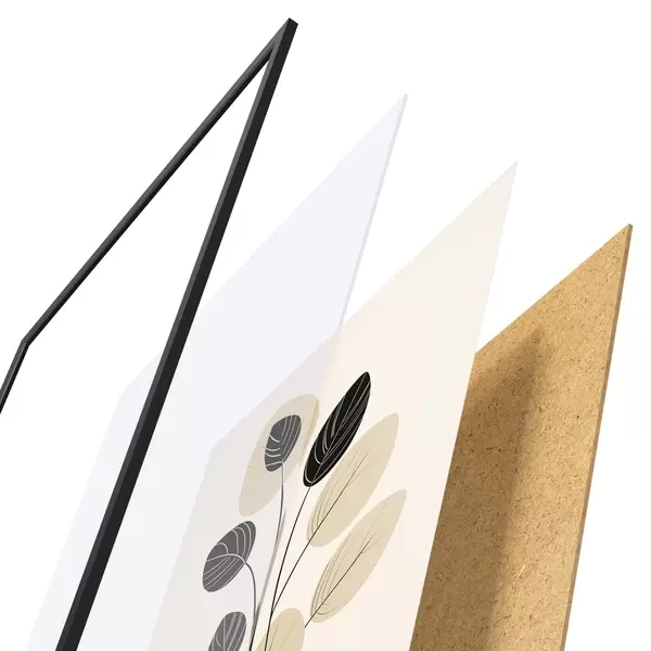 El póster consta de marco, plexiglás, imagen impresa y soporte de aglomerado. El póster puede colgarse inmediatamente en la pared gracias a los soportes de la parte posterior.
