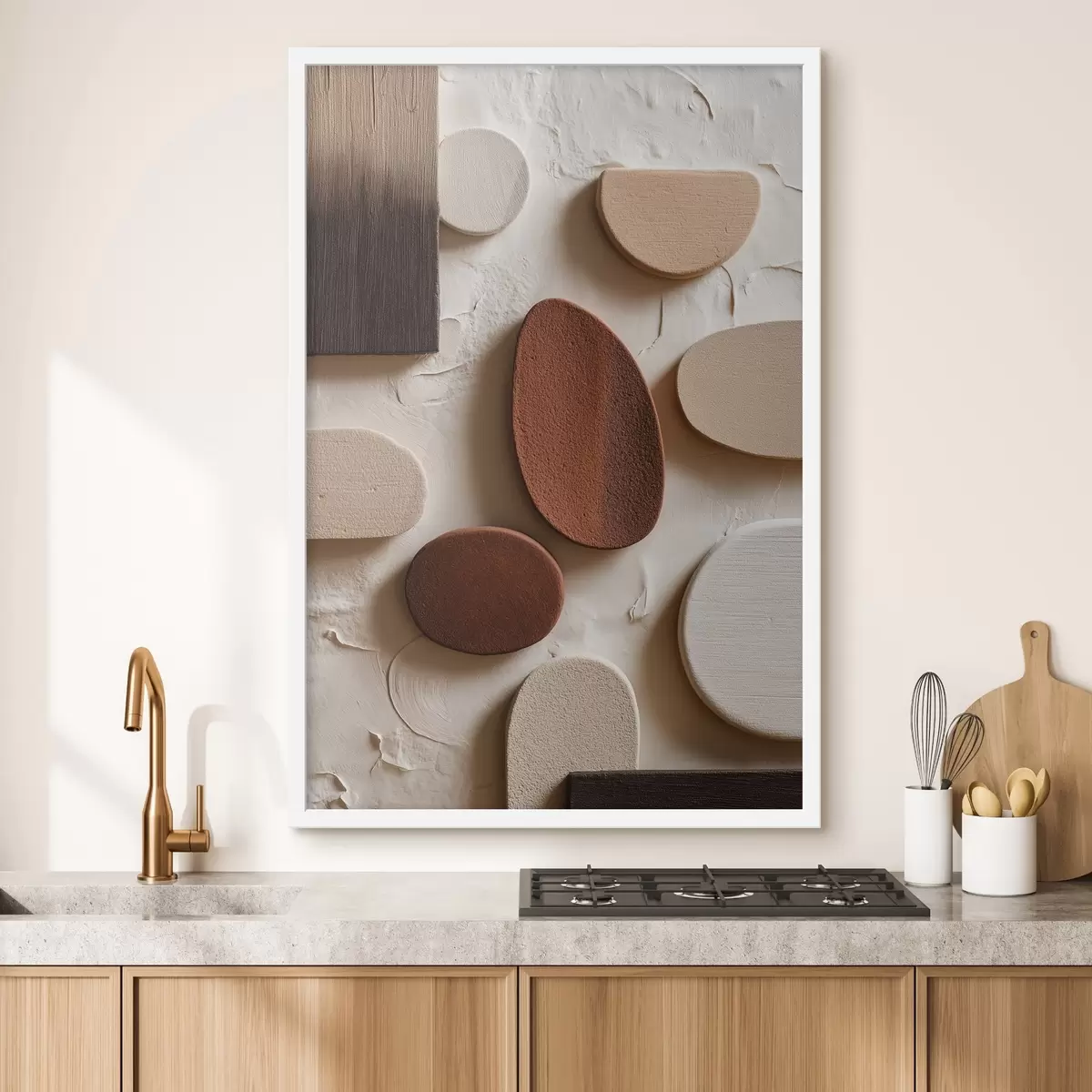 Poster Composición abstracta con formas geométricas tridimensionales sobre fondo en relieve Nr f45409