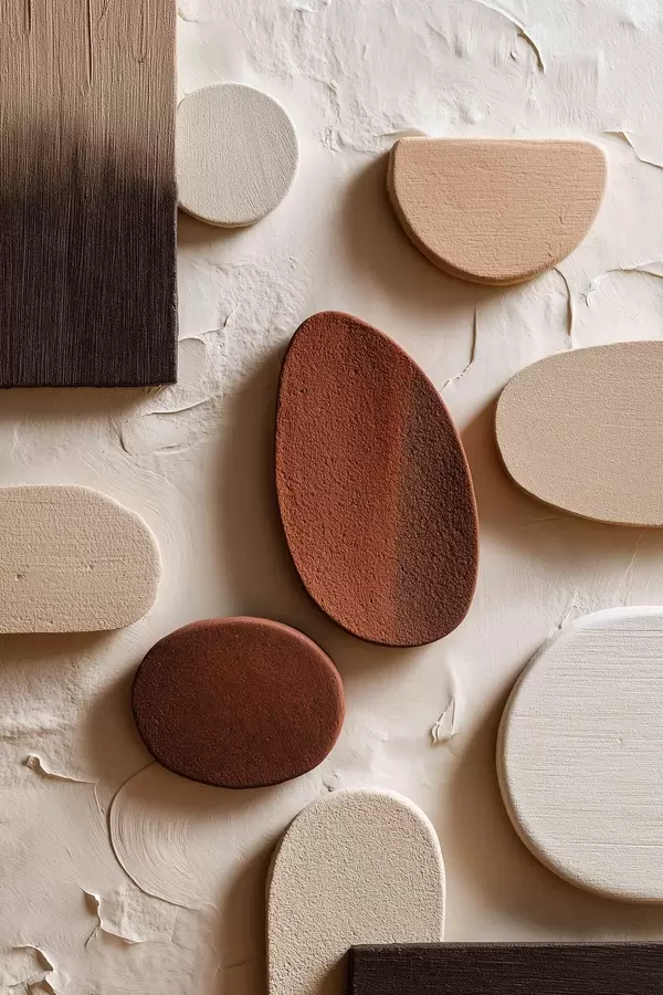 Poster Composición abstracta con formas geométricas tridimensionales sobre fondo en relieve f45409