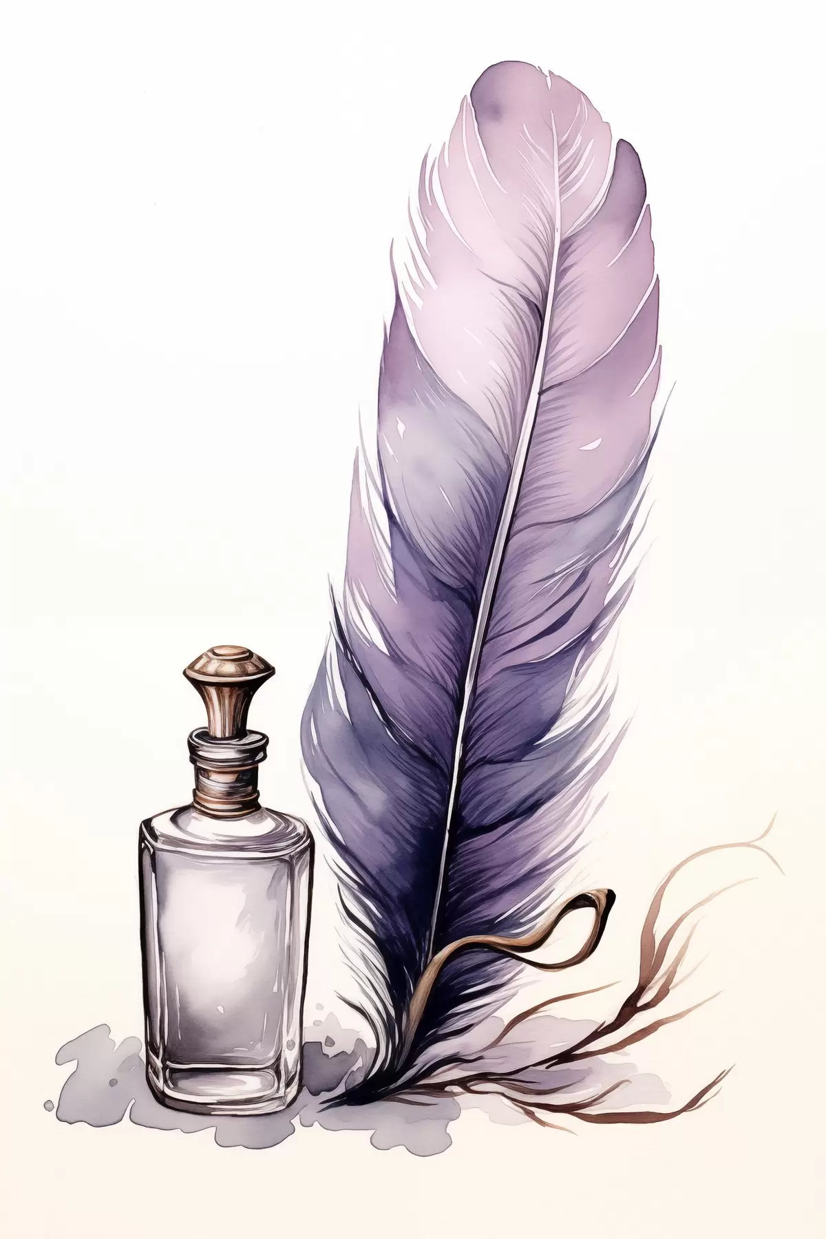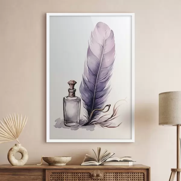 Poster Ilustración en acuarela de una pluma y una botella de tinta de cristal Nr f45410