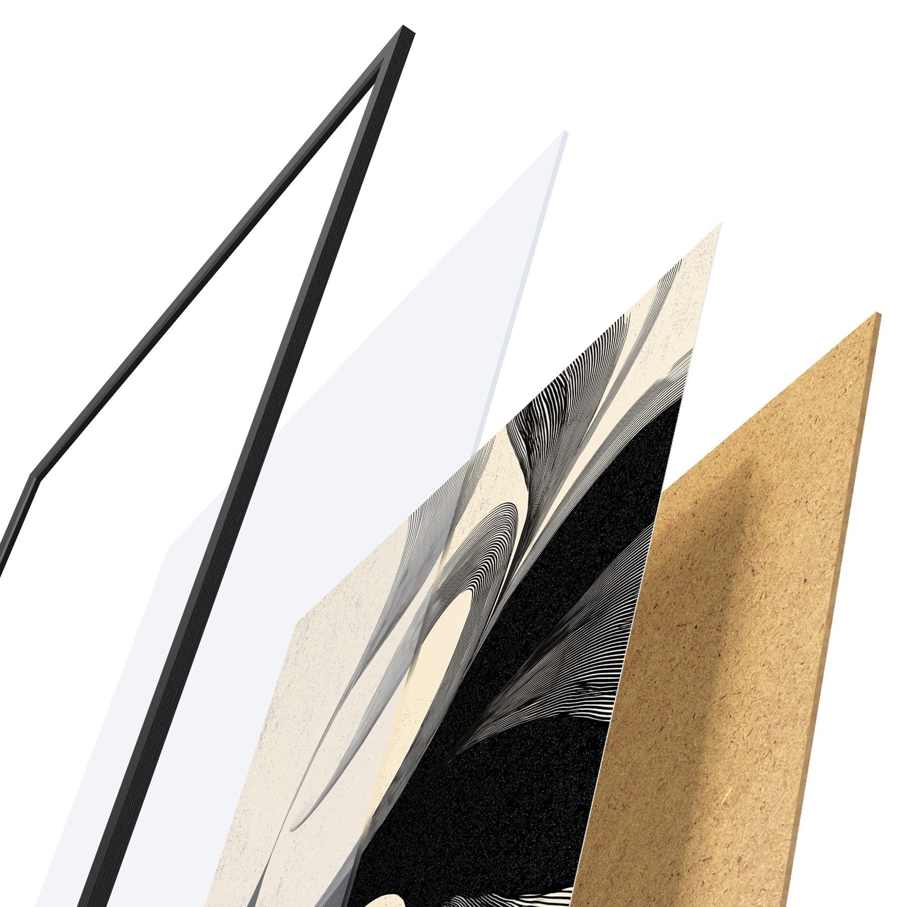 El póster consta de marco, plexiglás, imagen impresa y soporte de aglomerado. El póster puede colgarse inmediatamente en la pared gracias a los soportes de la parte posterior.