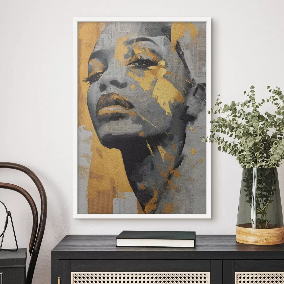 Poster Retrato en técnica mixta con fragmentos de periódico y pinceladas decorativas Nr f45419