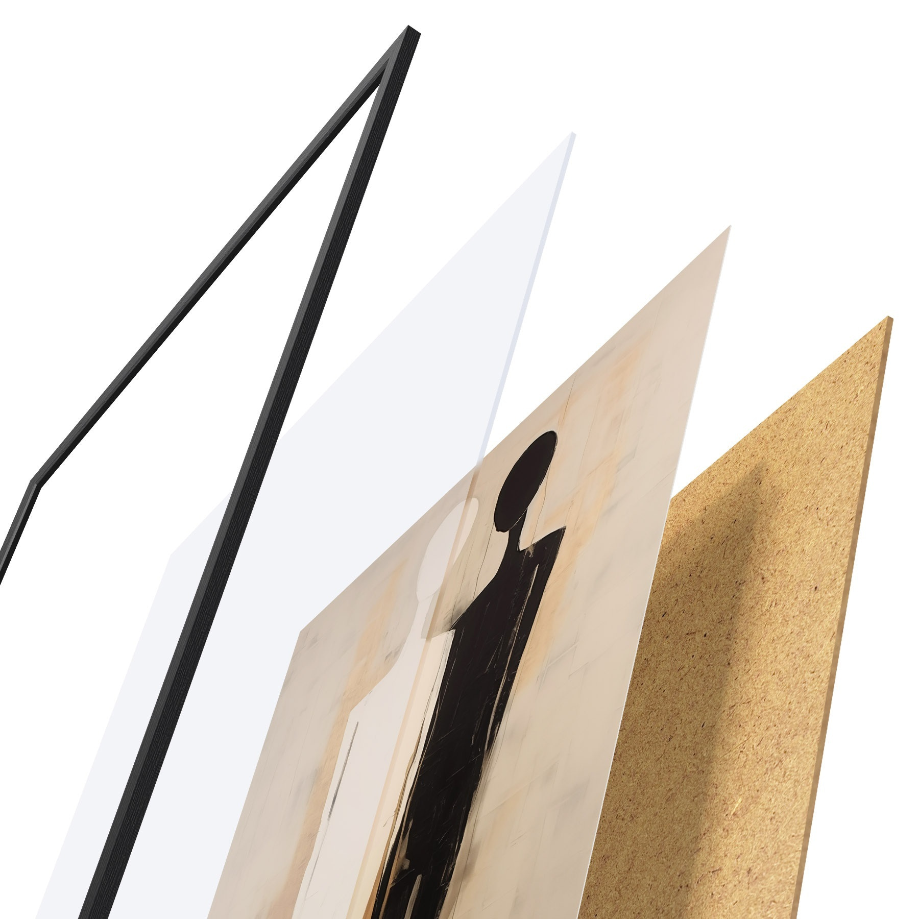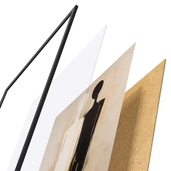 El póster consta de marco, plexiglás, imagen impresa y soporte de aglomerado. El póster puede colgarse inmediatamente en la pared gracias a los soportes de la parte posterior.