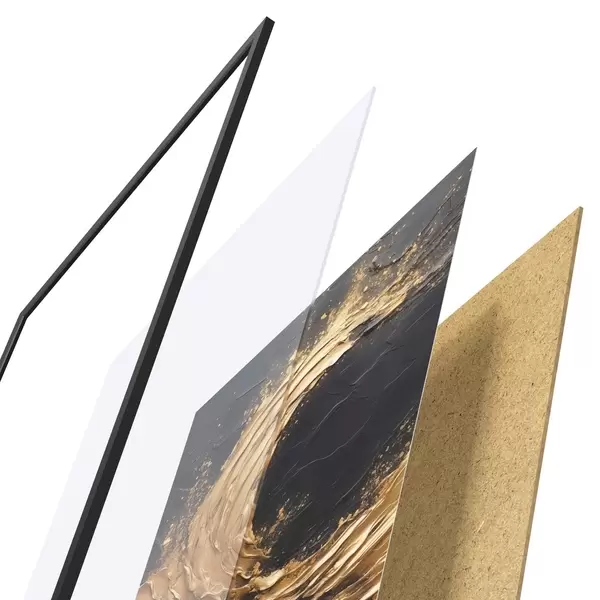El póster consta de marco, plexiglás, imagen impresa y soporte de aglomerado. El póster puede colgarse inmediatamente en la pared gracias a los soportes de la parte posterior.